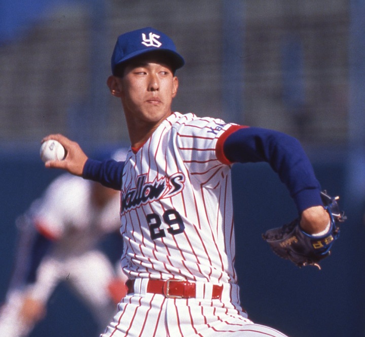 香川・寒川高からヤマハに進み、1年目から都市対抗で優勝。「勝つ味、勝つ野球を経験できたことはプロに入ってからも大きかった」と振り返る。ドラフト1位で1990年、ヤクルト入団。2位がトヨタ自動車の捕手・古田だった。1年目は31試合に登板し、10勝。翌91年は15勝8敗、防御率2.80でエースとなる。完封6、無四球試合4はリーグ最多だった。開幕投手を務めた翌92年は14勝、リーグ優勝に貢献した。93年も開幕投手となると、チームはリーグ連覇を果たした。