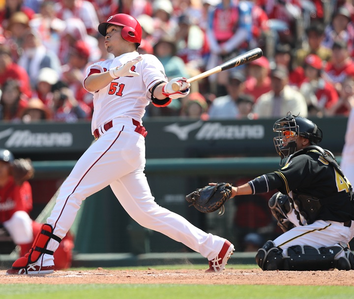 石川が理想の四番打者に挙げる鈴木。広島時代は6年連続で打率3割、25本塁打以上をマーク