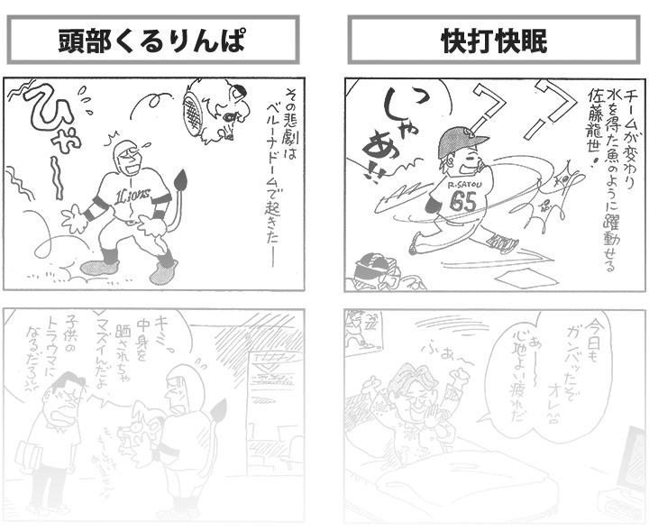 やく「トシ取ってくると、目覚ましをセットしなくてもカッキリ5時間で目が覚めるゾ」 担当「『果報は寝て待て』……とはいかない、新天地での勝負!」 PROFILE やくみつる●1959年3月12日生まれ。代表作に「パロ野球ニュース」「やくみつるのガタガタ言うゾ!」「やくみつるのマナ板紳士録」「やくみつるの平成ポテンショット」など多数。本誌連載のほかにも、コメンテーターとしても幅広く活躍中。