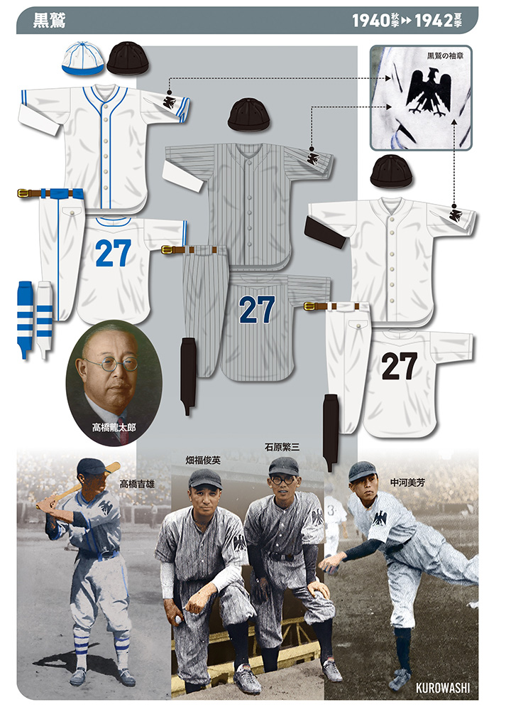 満州遠征から帰国したあとに行われた、1940年の秋季リーグ開催前の理事会で、日本野球連盟(現NPB)が野球の日本化を決定。これを受けて、イーグルスはチーム名を黒鷲と改称した。