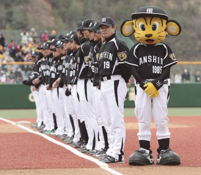 ▲阪神は和田監督以下全員が西村氏の「19」のユニフォームを着用。なお、現在は藤浪晋太郎が背負っている