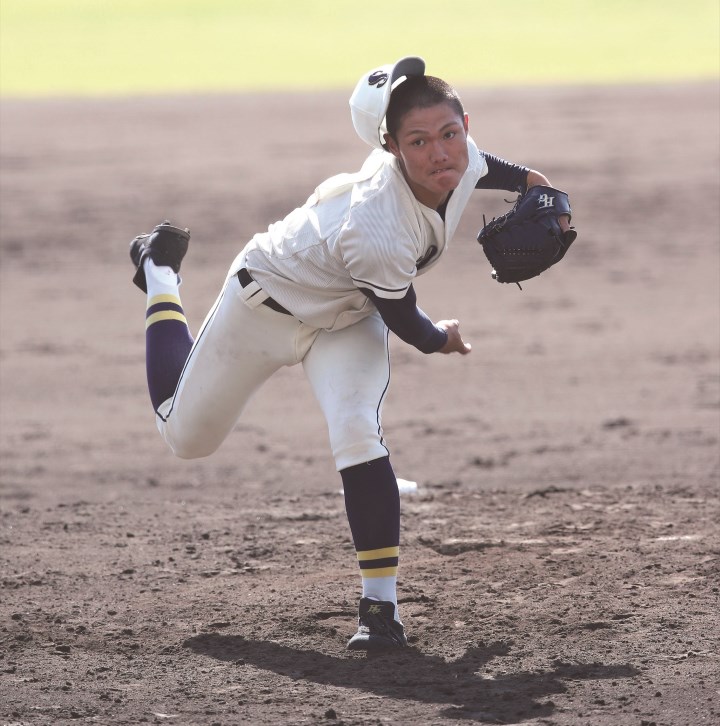 帽子を飛ばすほどの渾身の投球。センバツ出場はならなかったが、夏に向けての変貌が楽しみだ