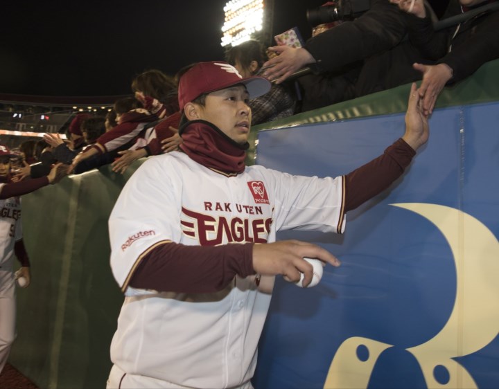 楽天生命パーク)、浅村栄斗内野手が、1点をリードした8回一死三塁の好機に打席へ。浦野が投じた真ん中に入ったフォークをとらえると、打球はイーグルスファンで埋まった左中間席に飛び込んだ。「試合を決める一打が出てうれしかった」。普段から冷静沈着な浅村だが、ベンチ前では珍しくガッツポーズでファンの声援に応えた。