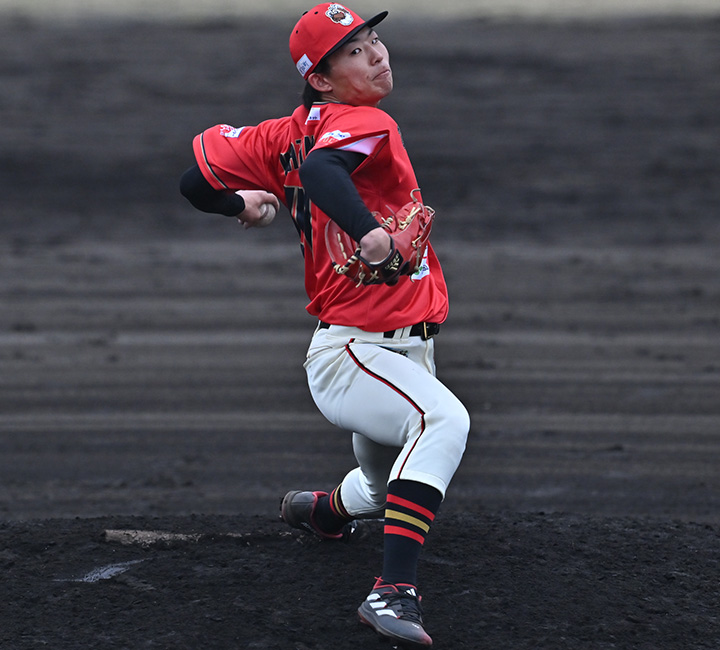 オリックス二軍対高知の交流試合(6月3日、大阪市)が、深夜から降り続いた雨のため中止になった。その2日前に行われた対徳島前期8回戦(1日、室戸市)に先発し、好投を見せたのは高知の左腕、渡邊都斗(中京大中退)である。