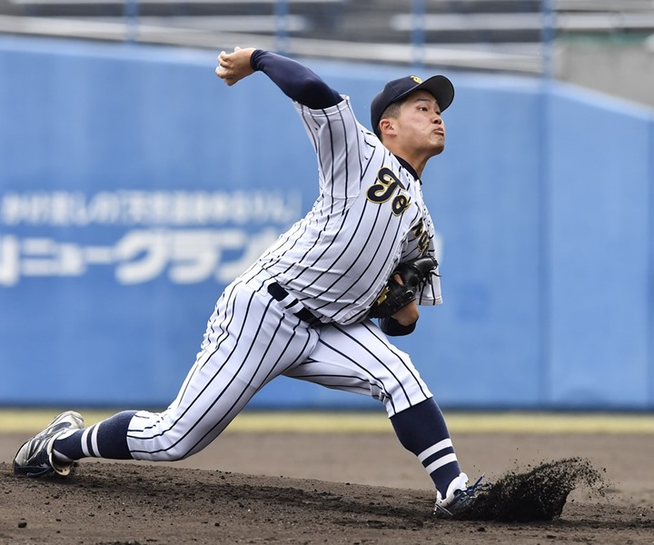 最速151キロ。キレのあるストレートとフォークボールを巧みに組み立てて、三振を奪えるピッチャーだ。学生ラストイヤーはチームを大学日本一へと導いた上で、リーグ戦では「年間10勝」を誓う。 取材・文=佐伯要