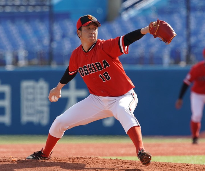 今季初登板となったセガサミーとのJABA東京スポニチ大会予選リーグでは、7回1失点。チームの7回コールド勝ちに貢献している/写真=大賀章好