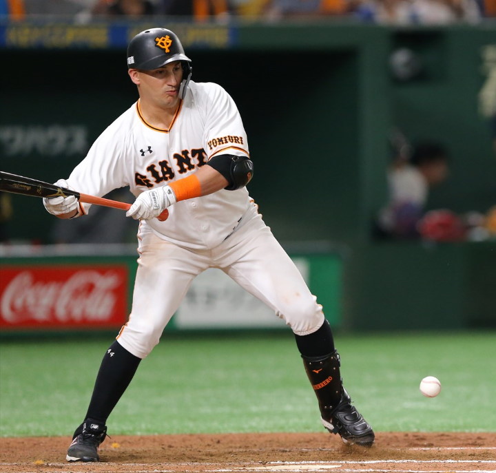 外国人でも関係なくチームが勝つために犠打のサインを出す巨人・原監督。それに応えるゲレーロもしっかりと納得してのバントをしています。ここれはなかなかできることではないです/写真=桜井ひとし