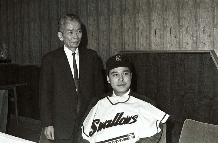 豊田の国鉄入団会見。左は監督の浜崎真一