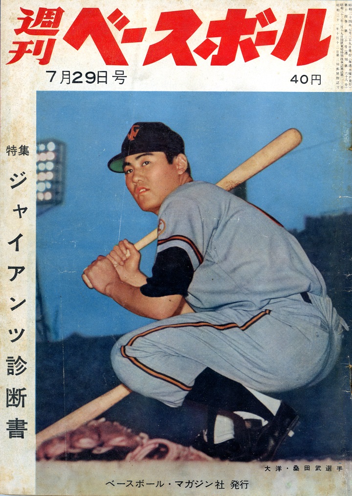 藤田元司の2ショット。巻頭グラビアには表紙にもなった大洋の新人・桑田武が18、19号を連発した試合が紹介されていた。