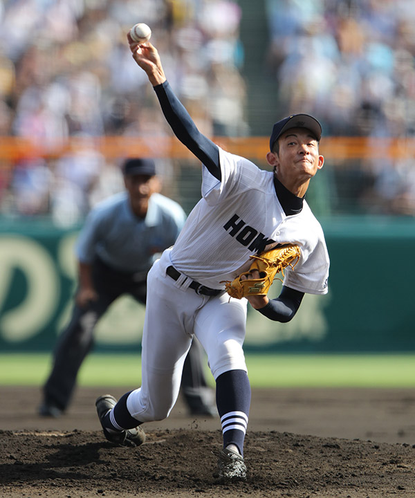 夏の甲子園で準優勝を果たした昨夏はベンチ外だった。だが、今夏は背番号10を背負って聖地のマウンドに立ち、コンスタントに140キロ台を投げ込み、自己最速の148キロもマークした長身右腕。腕のしなりが素晴らしく、球持ちが良いため、打者にとっては非常に見えにくい球筋だ。そこに130キロ台のカットボールと110キロの縦カーブを織り交ぜ、打者を幻惑していく。ノビシロを十分に感じさせる逸材だ。