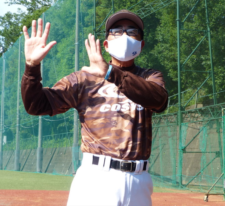 国士舘高は6月16日に活動再開後の練習を公開。永田監督はマスクをつけ、感染予防対策を講じて指導していた/写真=大平明