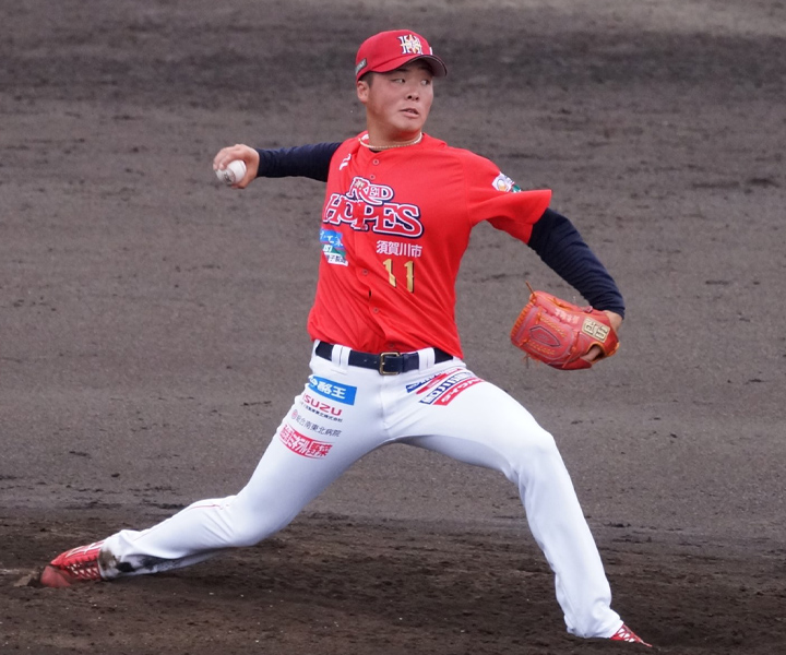 福島のカギを握るエース・鈴木。10勝を挙げ、ドラフト候補に名を連ねる