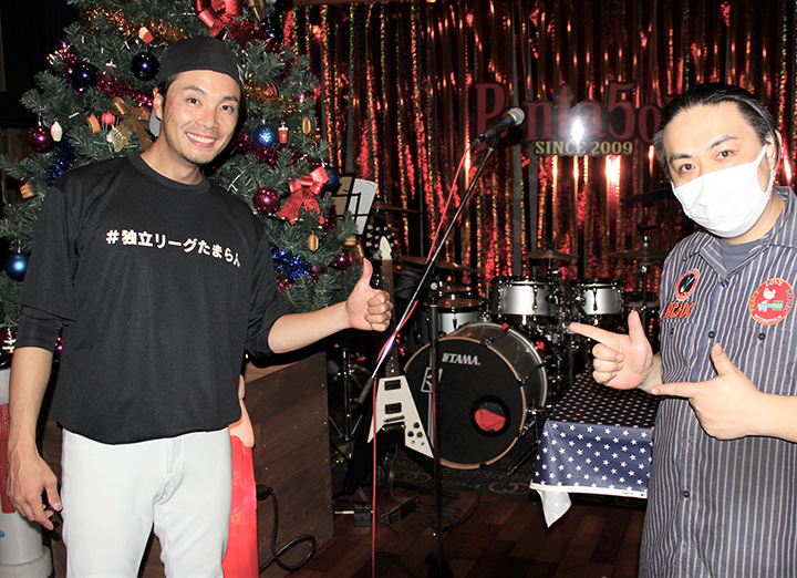 アルバイト当日の生山元コーチ[左]と、『Penta5on』[ペンタゴン]オーナー・志度穂高さん
