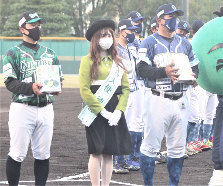 開幕セレモニーでは『すだち大使』の古川舞佳さんと、県のマスコット『すだちくん』が両チームの監督に徳島県産のすだちを贈呈した。徳島出身のシンガー・ソングライター、皆谷尚美さんが国歌を斉唱し、四国放送ラジオが試合を生中継する。華やかな雰囲気の中、午後6時2分にプレーボールが掛かった。