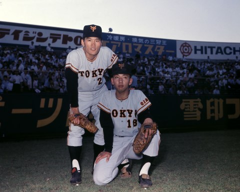巨人時代、公私にわたって親しくしていた筆者[手前]と高橋一三氏[写真=BBM]
