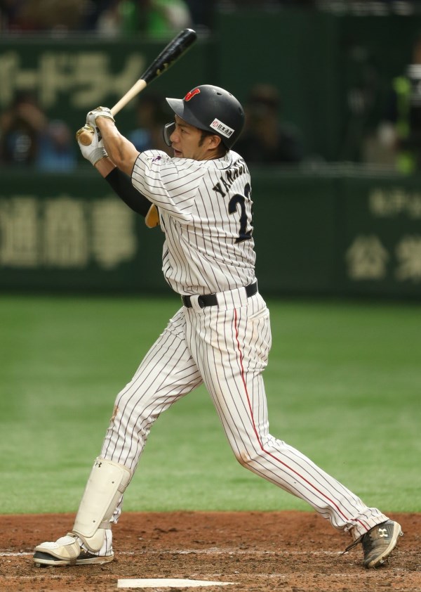 日米野球でメジャーに引けを取らないパワーを見せた柳田/写真=榎本郁也