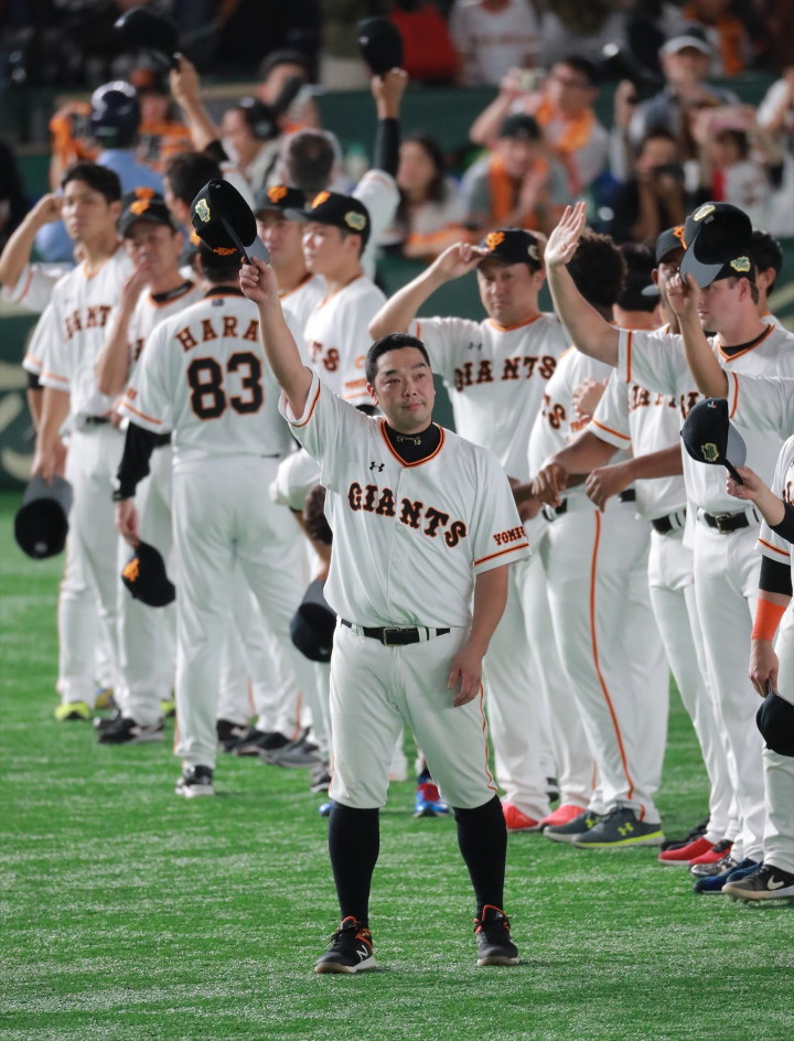 日本シリーズ後、観客に手を振る阿部/写真=高原由佳