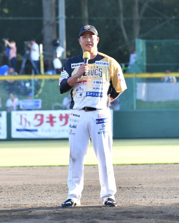 引退試合であいさつを行った村田修一/写真=BBM