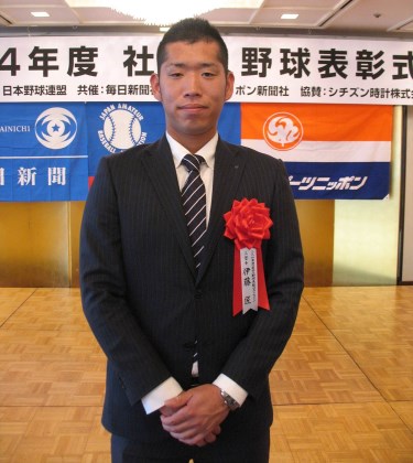 ▲昨年12月の社会人ベストナイン表彰で、三塁手部門の栄冠に輝いた伊藤。「今年もあの場に立つ」と、チームの都市対抗連覇へ全力を注ぐ