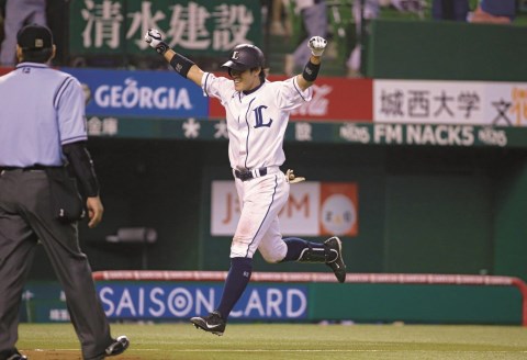 7月2日の日本ハム戦(西武ドーム)、2点を追う9 回裏一死二、三塁で2ボール2ストライクからの一振りで放った打球はライトスタンドへ。自身プロ初本塁打は、劇的なサヨナラ弾となった