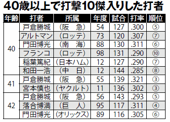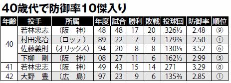 今年中に40歳に達する選手は投打合わせて22人もいる。DeNAの三浦大輔は12月で42歳になるが、開幕から3連勝。中日の