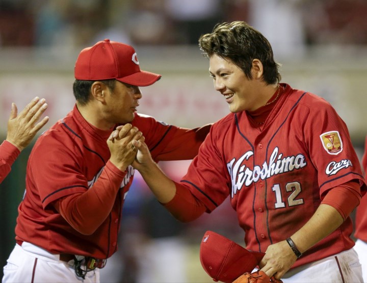 交流戦最下位になりながらも、首位・巨人と1ゲーム差の広島。まだ貯金が6つもあってリーグ戦再開。緒方孝市監督[左]の手腕の見せどころや。この広島を含め3強にDeNAが優勝争いに加わってくるはずや