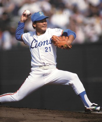 87年10月4日の阪急戦[西武]での東尾。この年は15勝、3完封。222回2/3を投げ、わずか29四球(うち6敬遠)という素晴らしいコントロールだった