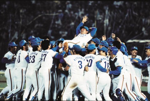 86年10月9日、就任1年目で優勝、ナインに胴上げされる森監督。これ以後、リーグ優勝8回、日本一6回の偉業を達成する