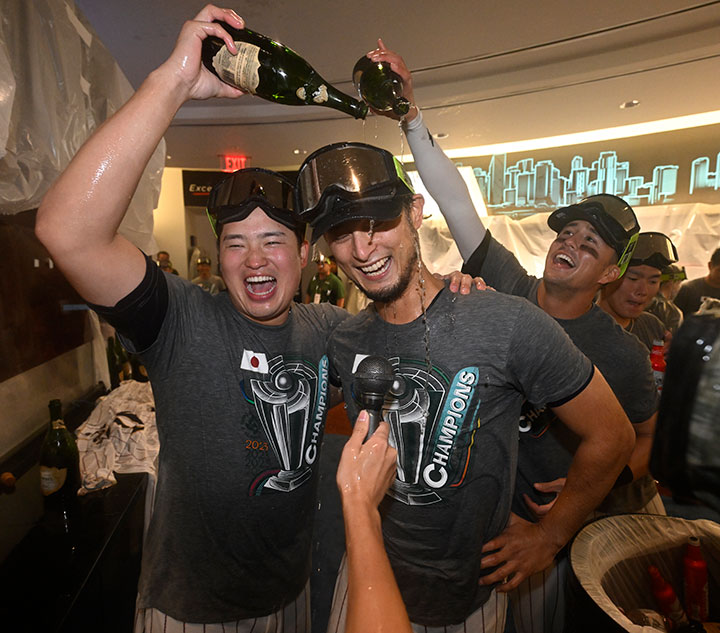 世界一の瞬間に何とか間に合わせることができました。試合前のアーリーワークの練習が終わったときが最終回。スマホなどで見ながら、優勝を見守りました。