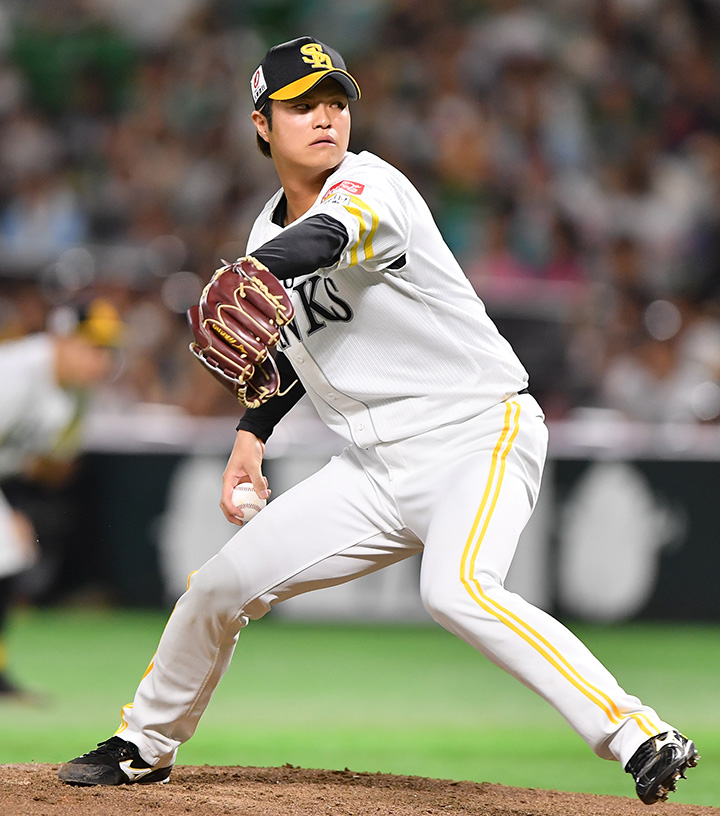 23年は46試合に登板し、防御率2.53という素晴らしい成績を残した甲斐野。西武では勝ちパターンで投げ素晴らしい活躍をしてくれるはずです[写真=BBM]