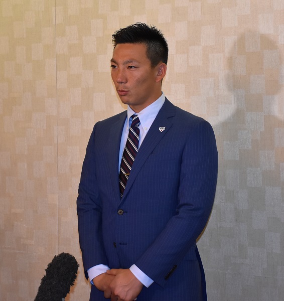 嶋基宏が右ふくらはぎ痛のため、侍ジャパンを離脱した。同日午前10時、日本代表の公式スーツを身にまとい、大阪市内の日本代表宿舎で取材に応じた嶋は、一言ひとこと、丁寧に言葉を選びながらその胸中を告白している。