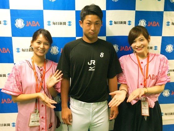 「公園遊びが趣味です!」と語ってくれたのは三菱重工名古屋の馬場強司選手(東邦高-専修大)と