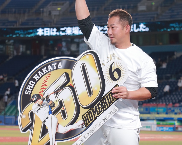 9月10日のロッテ戦(ZOZOマリン)で通算250号本塁打を放った日本ハム・中田。初の本塁打王へ視界は良好だ