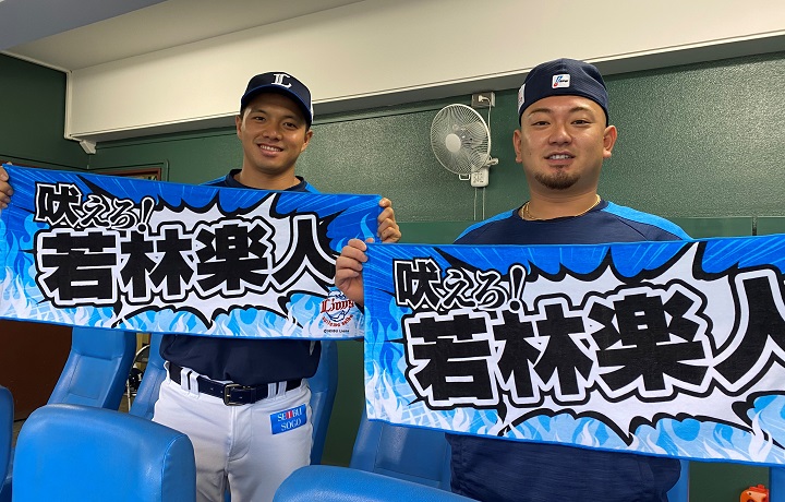ちなみに2人が持っている「若林楽人」のフェイスタオルは、メットライフドームでの一軍公式戦開催日であればドーム外周の売店(※)にて購入が可能。背番号35がこの地に戻ってくるのはしばらくかかるが、その間「若林楽人」の文字がメットライフドームに躍れば、長いリハビリが始まったばかりの本人にとっても、大きな励みになるだろう。