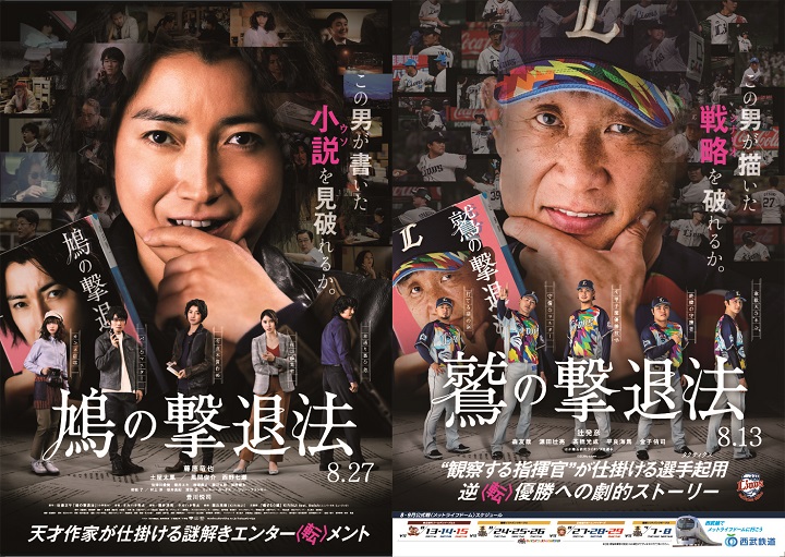西武は、俳優の藤原竜也さん主演で8月27日(金)から全国の劇場で公開予定の映画『鳩の撃退法』とコラボレーションした映画ポスター2種を、8月2日(月)より、西武線各駅などで掲出する。8月13日(金)からメットライフドームで開催する