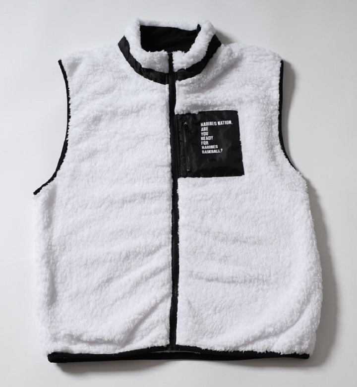 ソフトバンク戦(18:30試合開始)を対象とした「マリーンズボアベスト」を受け取ることができるグッズ付きチケットを先着3万人限定で販売する。
