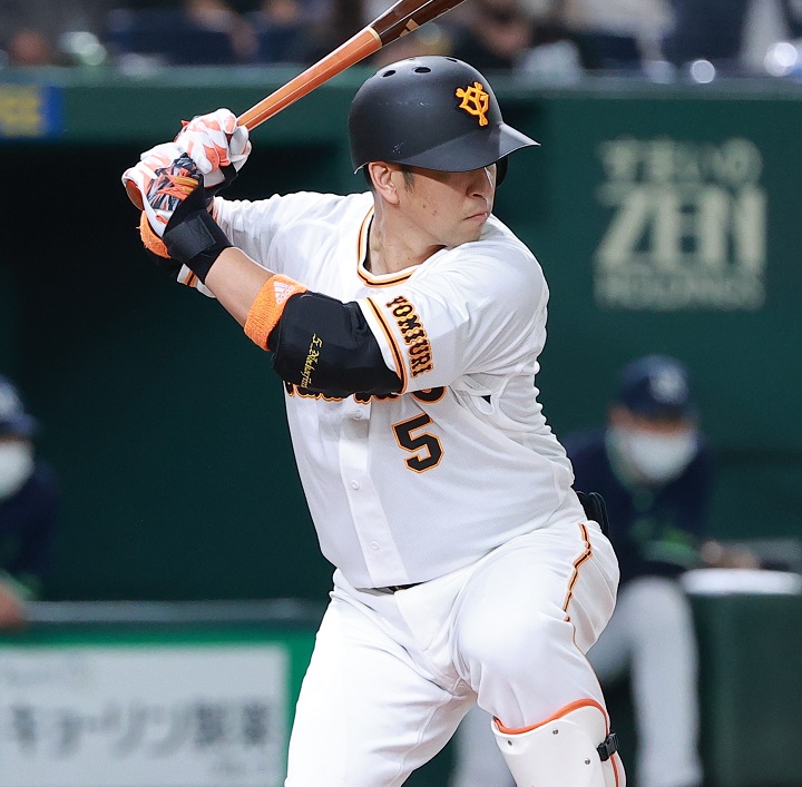 中日戦(東京ドーム)で4回に左翼線二塁打、3点差を追いかける8回無死一、二塁で左中間への適時二塁打を放つなど逆転勝利に貢献すると、翌27日の同戦でも初回に岡本和真の一発のあとに弾丸ライナーで今季初アーチを放った。4月3日の阪神戦(東京ドーム)では初回に左中間へ運ぶ先制の2号満塁弾を放ったが、徐々に好機で凡退する打席が目立つようになった。