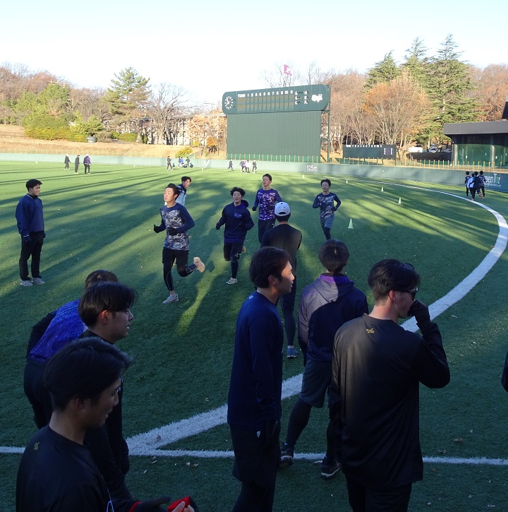 朝6時30分から練習を開始し、7時からは約1時間、年末恒例のポール間走。気温10度を下回る厳しい寒さの中であったが、明大の部員たちは汗びっしょり。12月24日、充実の中で2022年の練習を納めた。