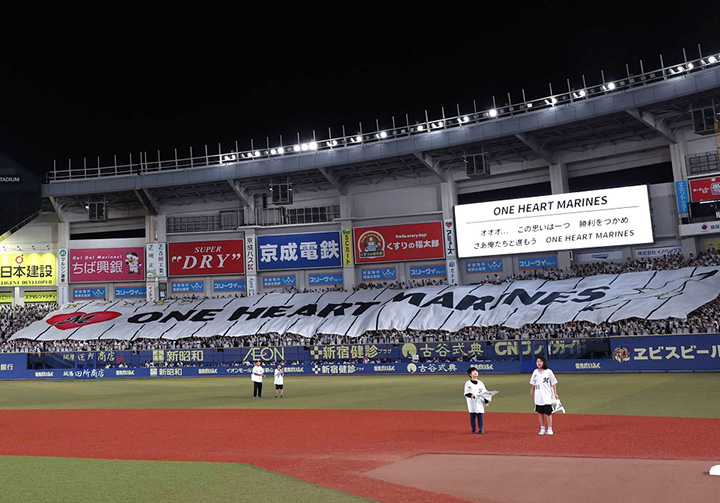 ビッグフラッグ実行委員会と千葉ロッテマリーンズ応援団協力のもと、試合演出の一環として試合開始前の18時25分頃に「ONE HEART MARINES」と書かれたビッグフラッグをライトスタンドに掲出するもの。