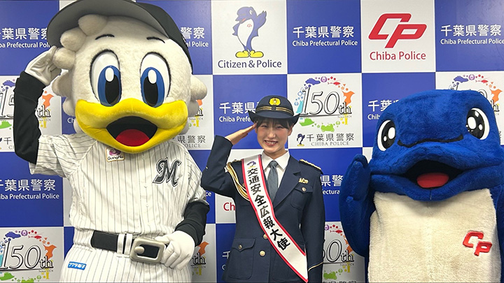 千葉ロッテマリーンズは、4月9日に球団マスコットのマーくんと球団公式チアパフォーマー「M☆Splash!!」で千葉県出身のSORA(そら)が千葉県警察本部にて交通安全広報大使に委嘱されたと発表した。