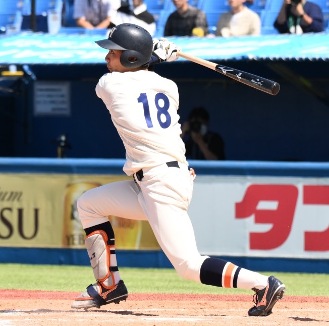 1対1の4回表には、センターオーバーの勝ち越し三塁打を放った[写真=矢野寿明]