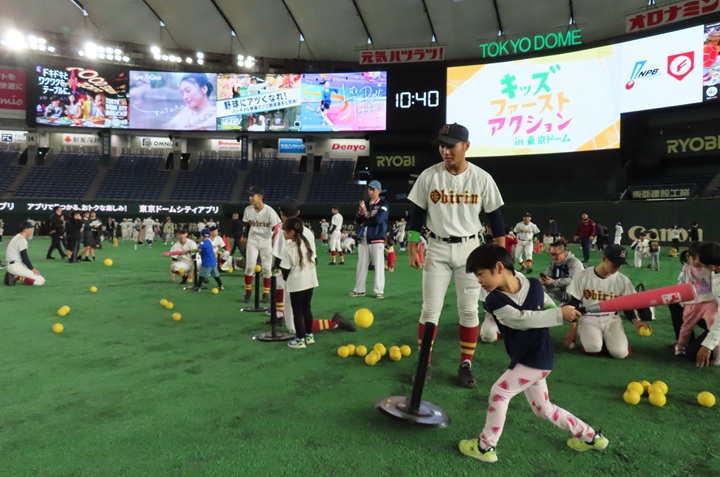 日本高等学校野球連盟と日本野球機構が主催した「キッズファーストアクション in東京ドーム」が11月16日、東京ドームで開催された。午前10時から2時間、この日の19時からの侍ジャパンの韓国との強化試合を控えた夢舞台で、子どもたちが体を動かした。