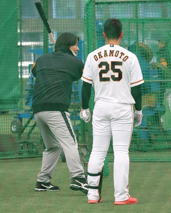いよいよキャンプが始まるね。楽しみだ[写真は18年巨人宮崎キャンプで岡本和真に指導する松井秀喜臨時コーチ]