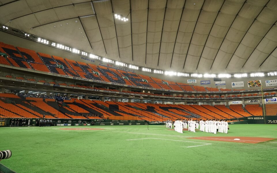 無観客でスタートした開幕戦風景[東京ドームの巨人-阪神戦]