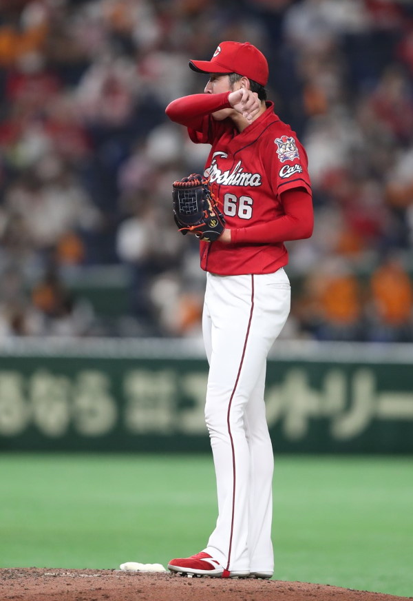 マウンドでの広島・遠藤。誰かに声を掛けてほしかった