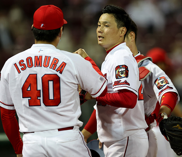 5月27日の西武戦[マツダ広島]で同点の9回に登板、無失点に抑えた広島・栗林[写真=前島進]
