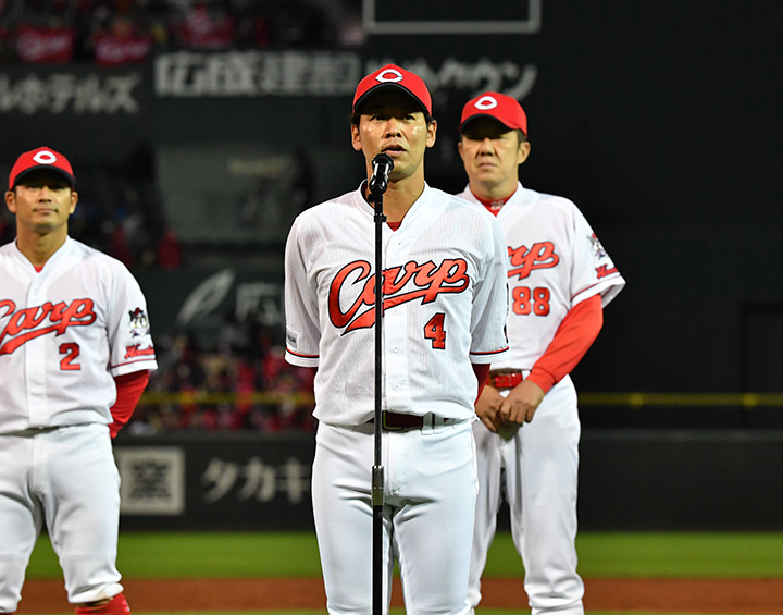 20年のマツダ広島最終戦、広島で退団のあいさつをする小窪