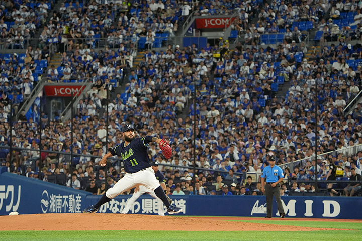 西日が差す横浜スタジアムに架けた通算305本目のアーチ。山田のメモリアル弾はファンが集うビジター席へ届いた
