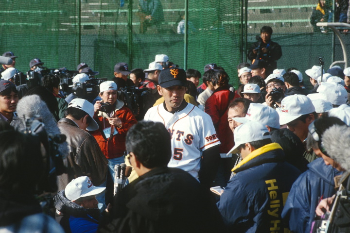 入団1年目、春季キャンプでの清原。常に報道陣に囲まれていた