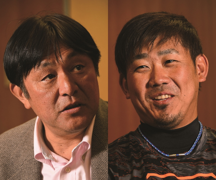 (左)荒木大輔[野球解説者]、(右)松坂大輔[ソフトバンク]